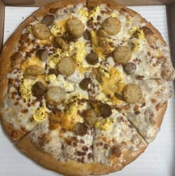 Our breakfast pizzas are baked on our hand tossed pizza crust or available as a gluten free pizza option, topped with classic morning favorites like eggs, cheese, and savory meats. They’re hearty, flavorful, and just what you need to start the day right.